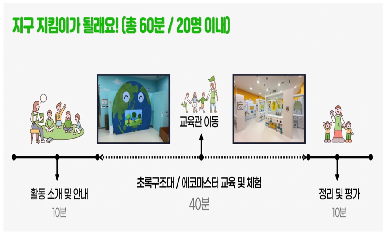 • 유아 기후환경교육관: 유아들의 눈높이에 맞춰 놀이를 통해 기후와 환경을 배울 수 있도록 만들어진 전용 체험학습장으로, 수도권과 충북 지역에 위치해 있습니다.